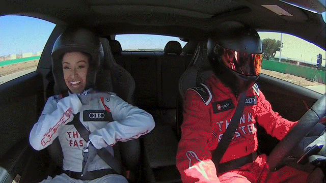 What happens when you put A-list celebrities in an Audi Sport car and launch them around a track at 130+ mph and make them answer questions in the world's first ever live-video AMA
